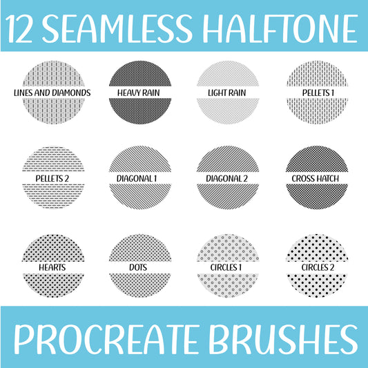 12 SEAMLESS HALFTONE PROCREATE BRUSH SET